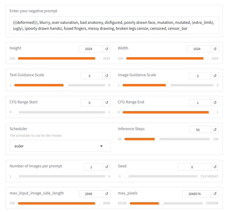 Max_input_image_side_length & max_pixels(输入限制):限制输入和输出图像的最大像素,避免因画面过大超出硬件、模型承载,保证生成稳定。