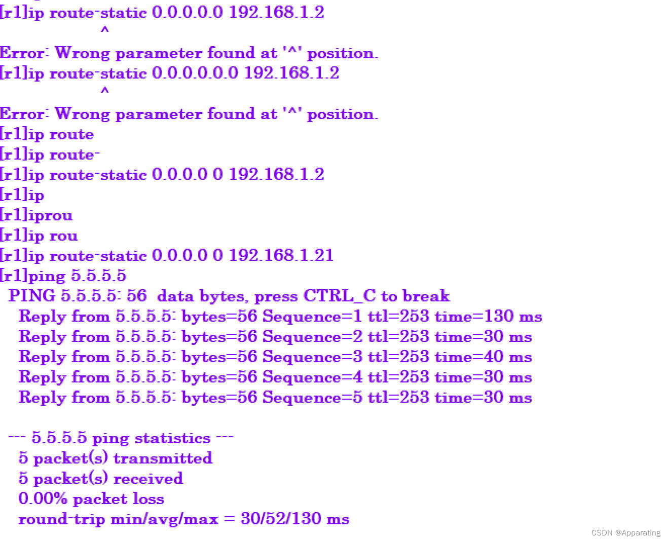 第四步 分别给r1与r4配置静态路由 使其全网可达(其他路由器同r1)