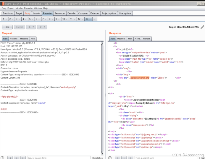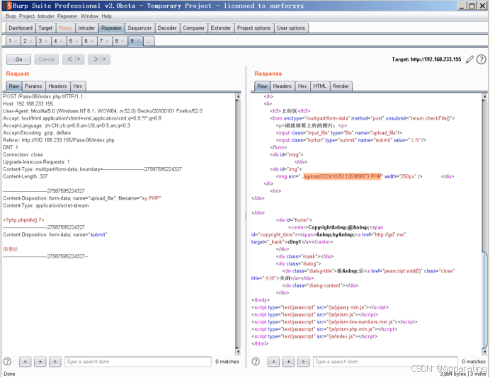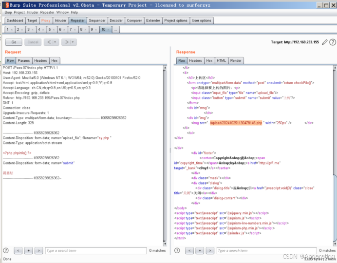 输入:http://192.168.233.155/upload/202410241514327275.php3成功进入