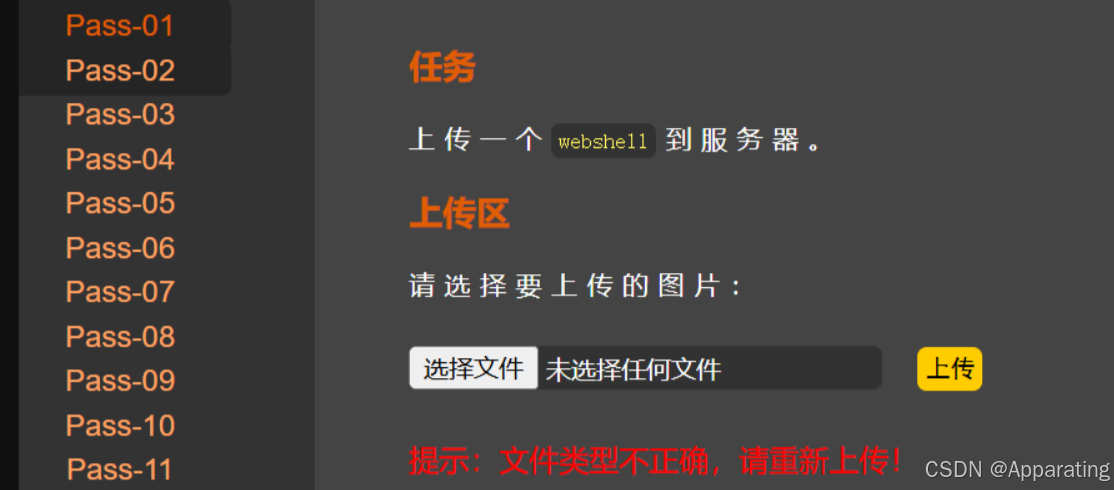 3 源码可以得到 黑名单把文件扩展名全部加上了,这个时候需要换一种方式可以选择通过'.htaccess'文件进行绕过。创建'.htaccess'文件,然后在其中写入代码,使得文件在解析时将'.jpg'文件解析为'.php'文件