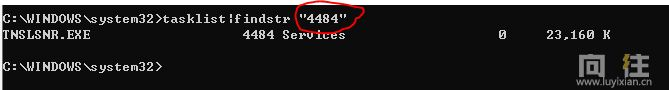 3.如果不放心,也可以查看一下占用该端口的是哪一个程序,运行tasklist|findstr "4484",其中4484就是刚才的pid