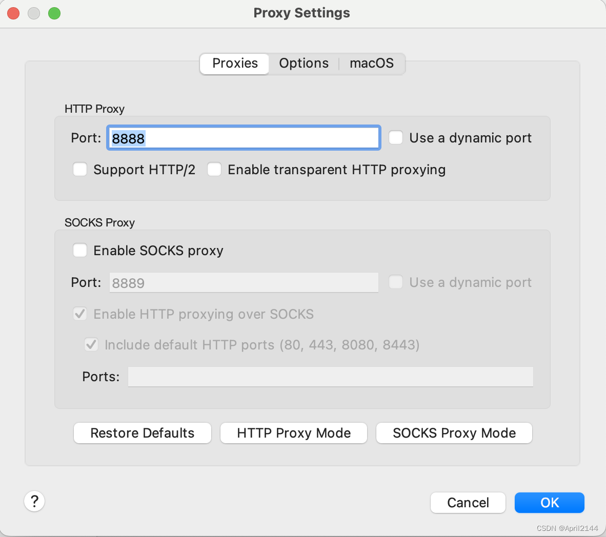 3.Proxy Settings为默认设置即可,不需要做别的更改