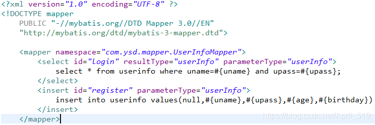 9)在dao包中创建映射文件:UserInfoMapper.xml