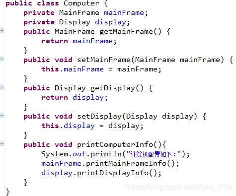 要求:计算机由主机和显示器组成,我们需要输出一台计算机的信息,比如该计算机由什么型号的主机、什么型号的显示器组成