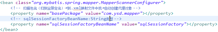 d)在Spring配置文件中创建Bean,扫描mybatis的所有接口,产生对应的实例,并自动放入Spring容器