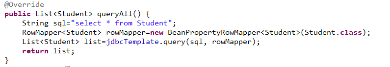 e)创建接口的实现类:StudentDaoImpl,并在类中添加JdbcTemplate类型的属性