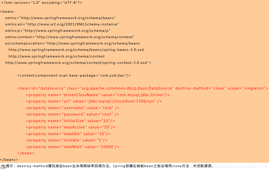 Spring的schemaLocation详细规定了Spring配置文件的合法元素、各元素出现的先后顺序、各元素的合法子元素以及合法属性等
