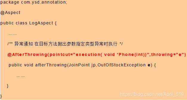 除了需要指定切入点外还需要根据方法参数名称绑定异常对象