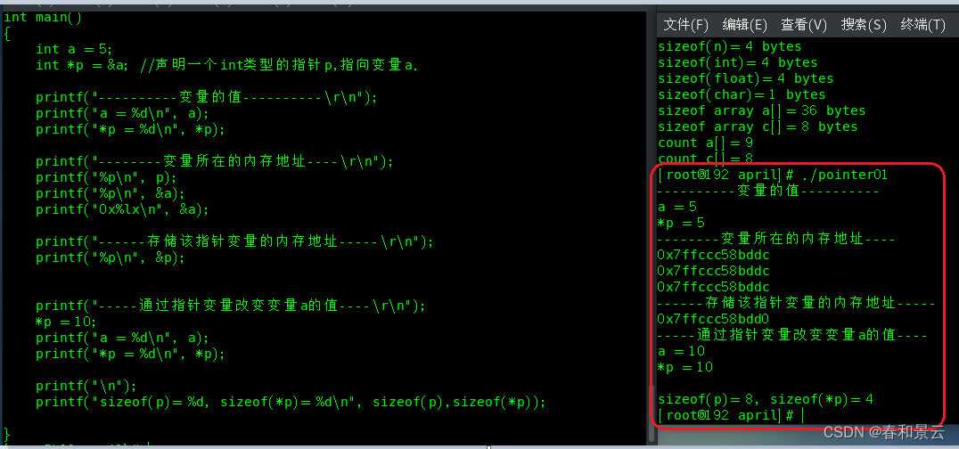 &放在变量的前面,代表该变量的地址。