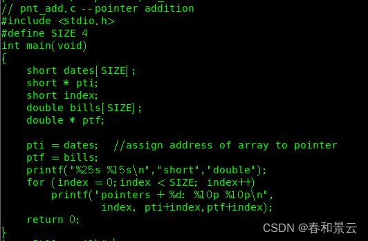 pti = dates; ( or pti=&dates[0];) 把数组dates首元素的地址赋给指针变量pti。