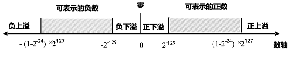 因此,规范化数的表达范围 [ − ( 1 − 2 − 24 ) × 2 128 , − 2 − 126 ] ∪ [ 2 − 126 , ( 1 − 2 − 24 ) × 2 128 ] [-(1-2^{-24}) \times 2^{128},-2^{-126}]\cup[2^{-126},(1-2^{-24}) \times 2^{128}] [−(1−2−24)×2128,−2−126]∪[2−126,(1−2−24)×2128]