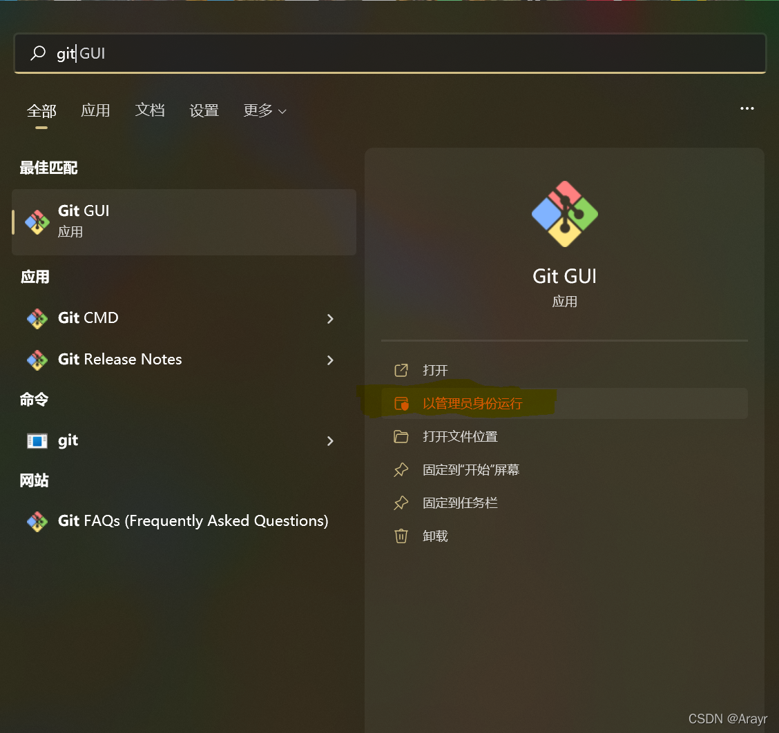 git以管理员身份运行!