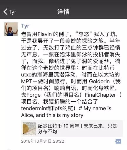 陈天也在转发老冒的纪念文章时发表了自己投身区块链创业的感受——