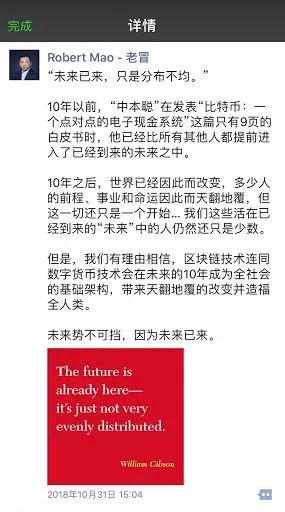 10 月 31 日是中本聪发表比特币白皮书 10 周年的日子,老冒表示“我们有理由相信,区块链技术连同数字货币技术会在未来的10年成为全社会的基础架构,带来天翻地覆的改变并造福全人类。”