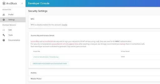 Developer Console 是 ArcBlock 开发者服务控制台的雏形,初版实现的功能主要是管理开发者身份信息管理、账户安全设置、ABT 持有量证明等。