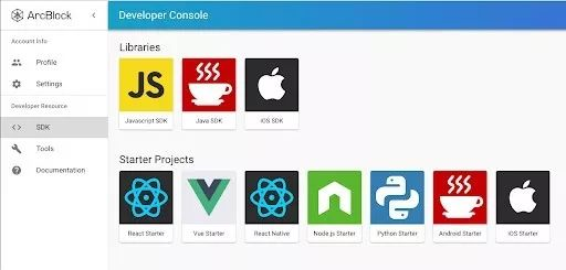 Developer Console 中还汇集了 ArcBlock 为开发者提供的各种 SDK、Starter Project、开发工具、代码示例等内容的链接,方便开发者找到自己需要的内容,快速开始开发自己的应用。