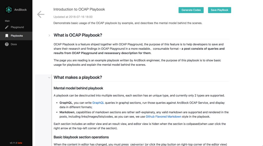 在我们内部讨论过程中,产生了一个新的产品形态:Playbook,方便区块链开发者研究、记录、分享自己在 OCAP 服务上所做的研究、发现,目前 Playbook 已经开发除了雏形,相信不久之后,我们再打磨打磨即可对外公布,感兴趣的同学欢迎阅读我编写的:《Introduction to OCAP Playbook》,不想去阅读的也可以看看截图: