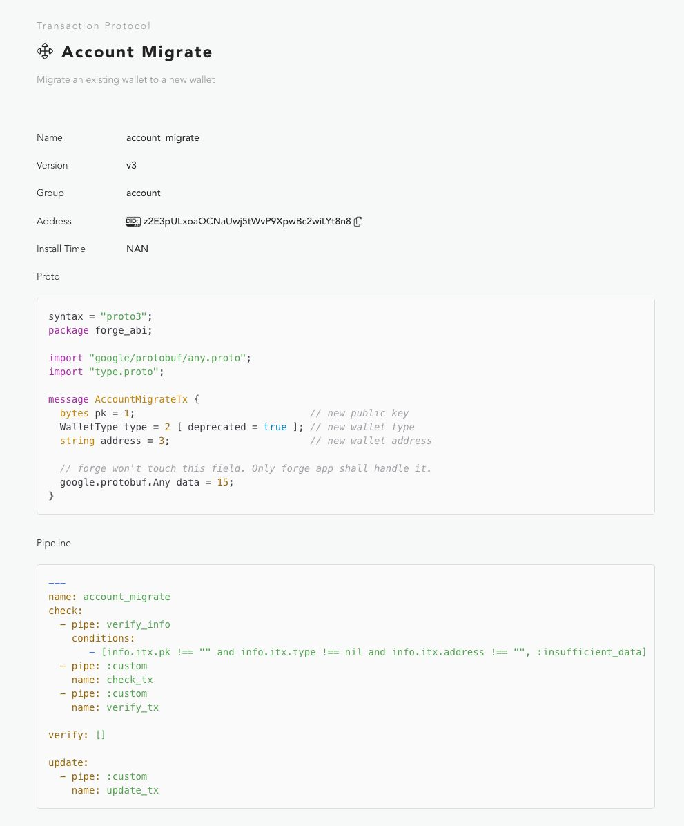 详情页[8]展示了某个 Transaction Protocol 的详情,比如他的处理流水线、链上数据验证和更新逻辑。