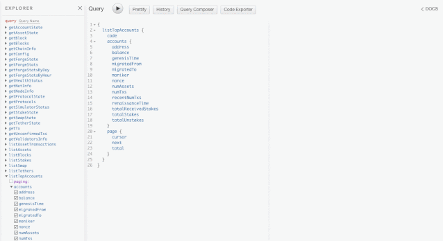 本地体验地址[4],新版集成了强大的 graphiql-explorer[5],开发者只需要简单的点几下鼠标就能构造链上数据查询语句。