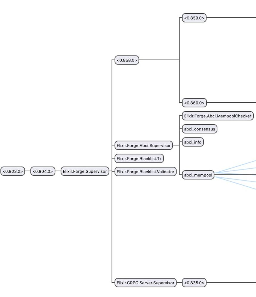 在 Forge[2],我们使用 Erlang/OTP 已经可用的功能和优点提供一个帮助开发者完成所有困难工作的框架。例如,如果您使用 Forge 启动一个区块链,唯一的要求是通过在配置或运行时启用或禁用它们来设置行为。更重要的是,如果您希望在链启动时进行更新,则可以热升级系统的各个部分,而无需重新启动整个网络节点——这是任何产品级应用或服务的关键特性。