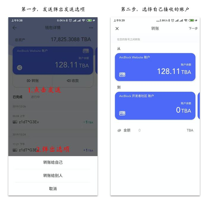 2.1 如果你在同一条链上存有多个同样账户,支持直接便捷的从自己的一个账户发送给其他账户