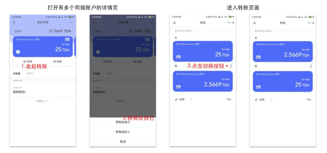 1. 自己同链多账户之间的转账支持便捷切换