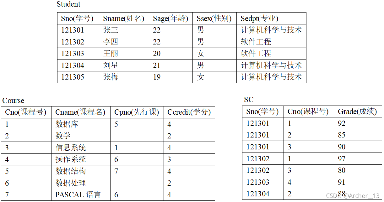 SELECT Student.Sno,Sname,Course.Cname,Grade