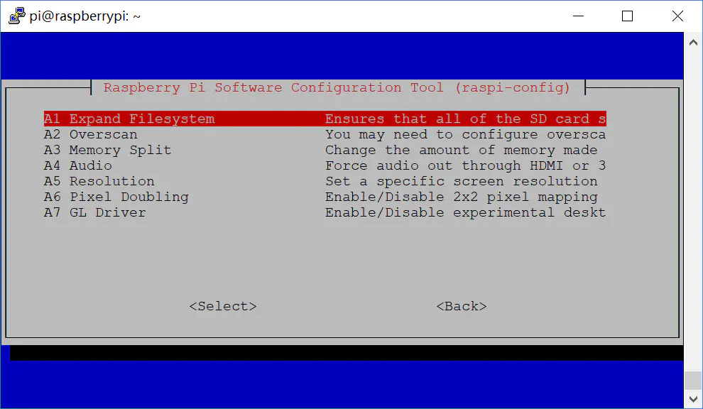 选择Expand Filesystem,将根目录扩展到这个SD卡,充分利用SD卡的存储空间。如果不进行这一步,后续命令会出现卡死。退出设置界面,重启树莓派。