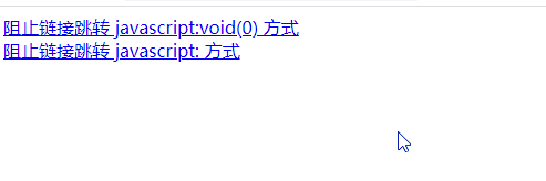 <a href="javascript:void(0)">阻止链接跳转 javascript:void(0) 方式</a><br>