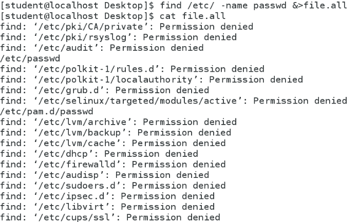 find /etc/ -name passwd 2>> westos #将passwd的错误输出内容追加( 2>> )到westos中