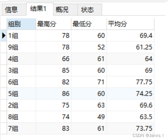 【实例】在student表中按照组别统计出ps成绩中的最高分、最低分、平均分。