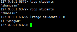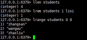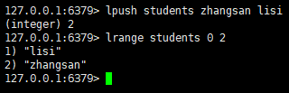 lrange students 0 2 # 遍历list,0起始索引,2结束索引