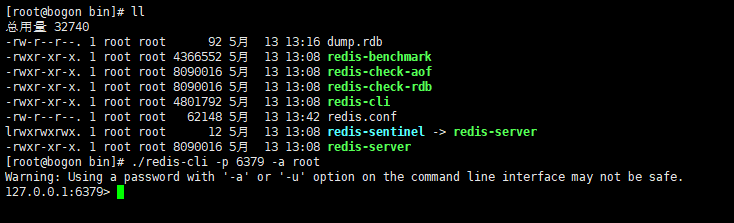 ./redis-cli -p 6379 -a root