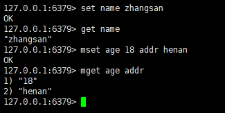 mset age 18 addr henan # 批量添加String类型数据