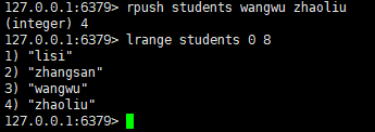 rpush students wangwu zhaoliu # 右边添加