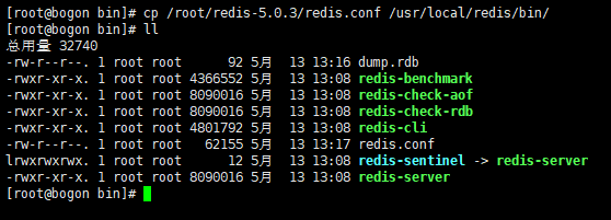 cp /root/redis-5.0.3/redis.conf /usr/local/redis/bin
