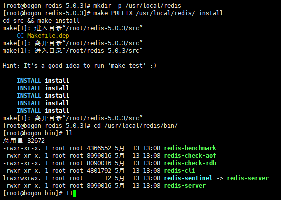 cd redis-5.0.3 # 进入redis目录