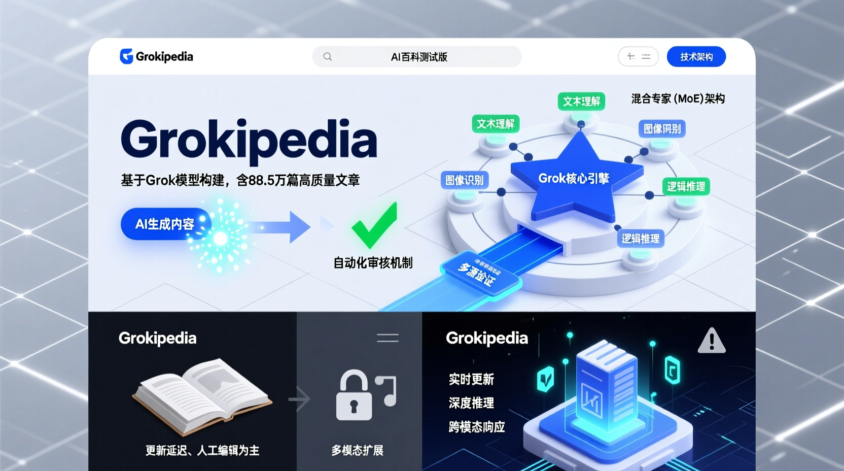 xAI作为一家专注于AI基础研究的初创公司,其产品线以Grok系列大模型为核心。Grokipedia的推出可以视为这一生态的自然延伸,旨在构建一个高效、可靠的知识库,支持AI模型的训练与人类用户的查询。