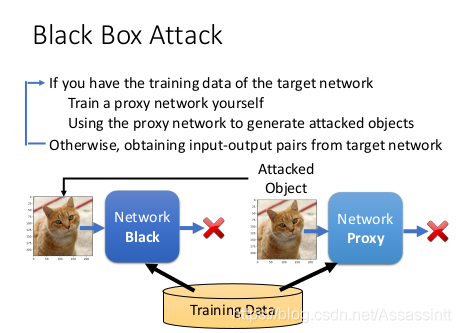 用training data 训练新的模型, 用模型找到攻击图片。 用新生成的图片攻击原来黑盒模型 |