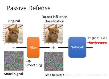Passive defense 被动攻击, 加上一层filter, 可以设计几个filter 保护model。给model 加上盾牌。