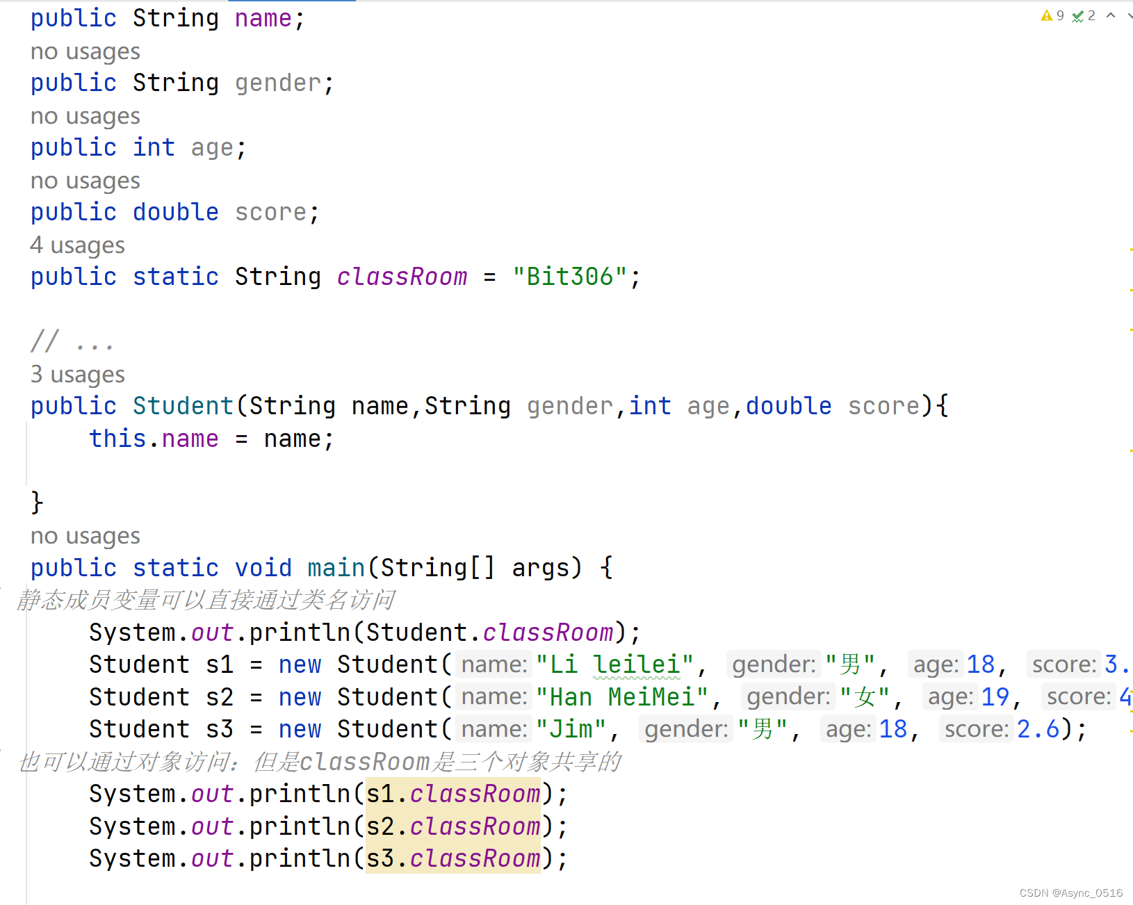 有一点细节需要关注,就是对象实例化的区域:在类之中,在成员之外。
