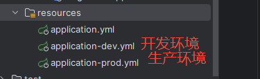 本项目我们用yml文件来写配置,可读性更强一些,然后我们再把配置在生产环境和开发环境分开来,顾名思义,开发人员用配置的和实际项目用的配置,配置文件就成了这样
