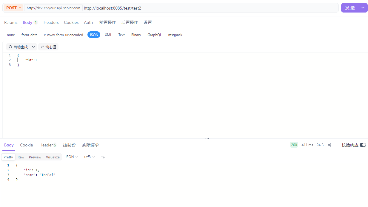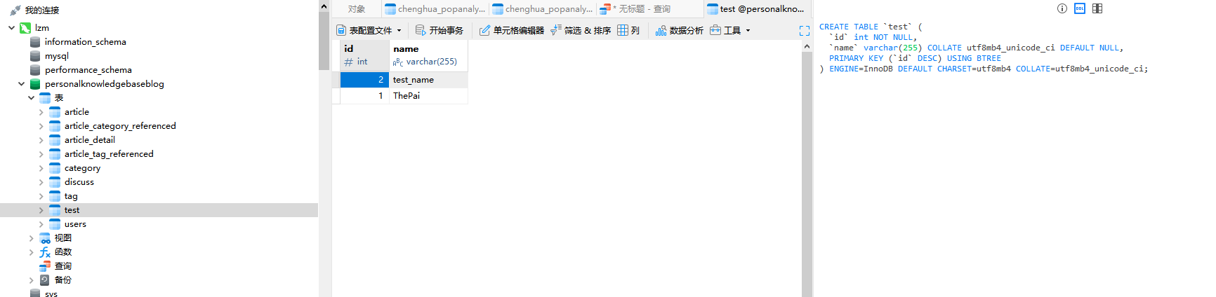 然后数据库就链接好了,测试一下,用test2接口看数据库是否联通