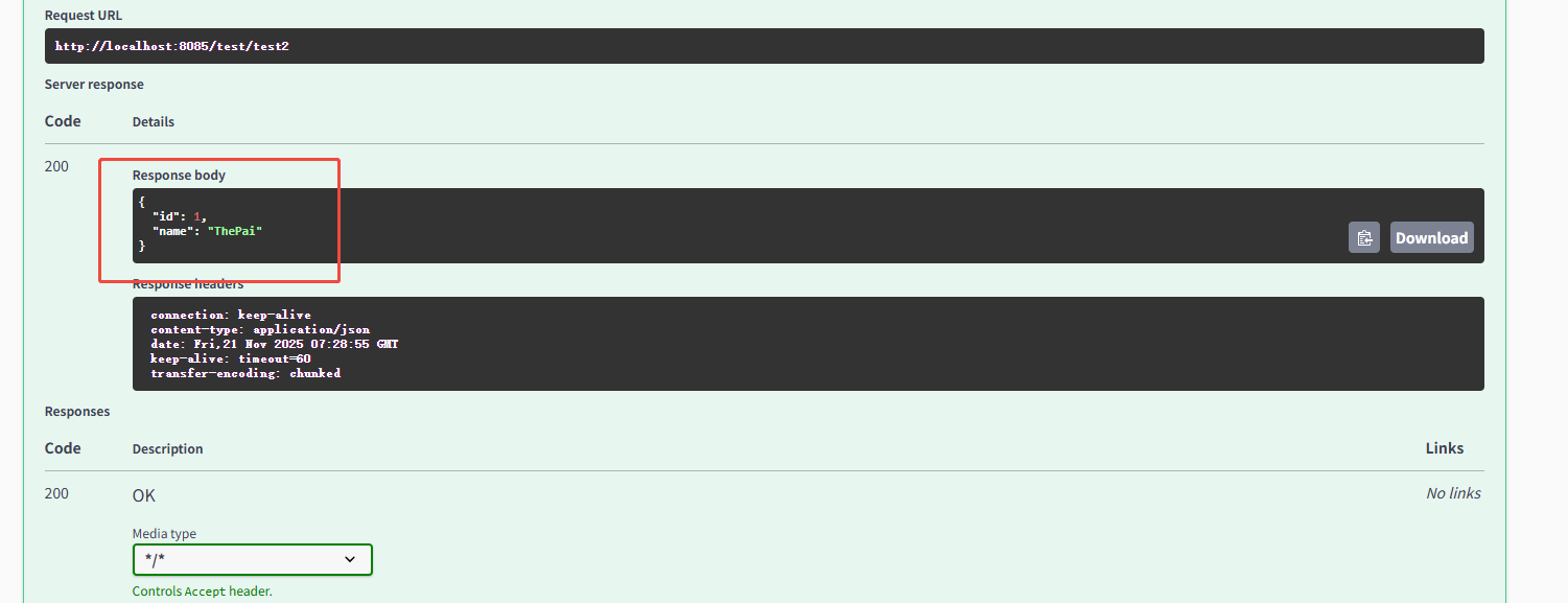 这样我们就不需要借助其他工具来进行接口测试,节约掉了我们写接口文档的时间
