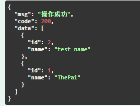 发现我们返回值就得到这样的返回值,就说明也成功用上AjaxResult的结果集了,这样规范的返回值给我们后续的前后端对接也提供了极大的方便。