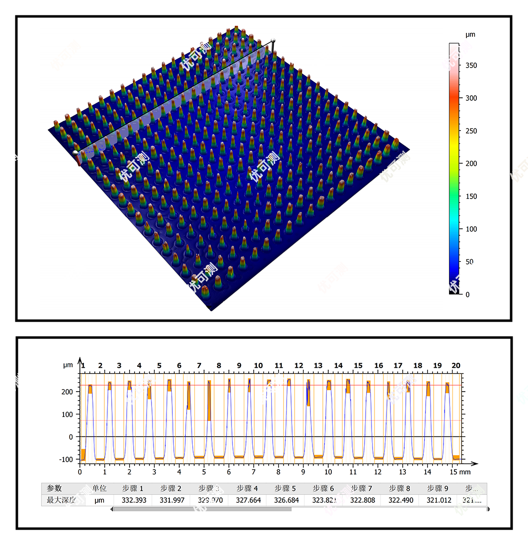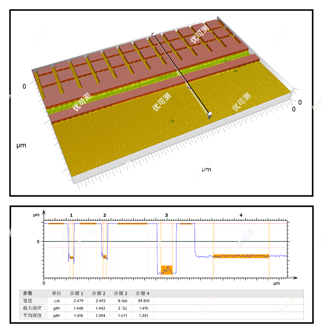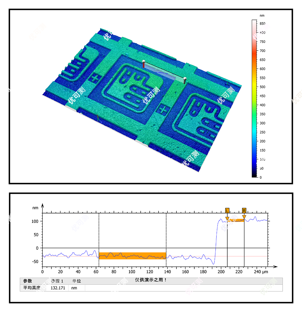 晶圆是存储芯片的制造基础,其表面粗糙度、平整度、厚度、涂层厚度、台阶高度等均影响存储芯片的最终品质与性能。对此,优可测实现从光刻胶涂层到晶圆成品的全方位检测: