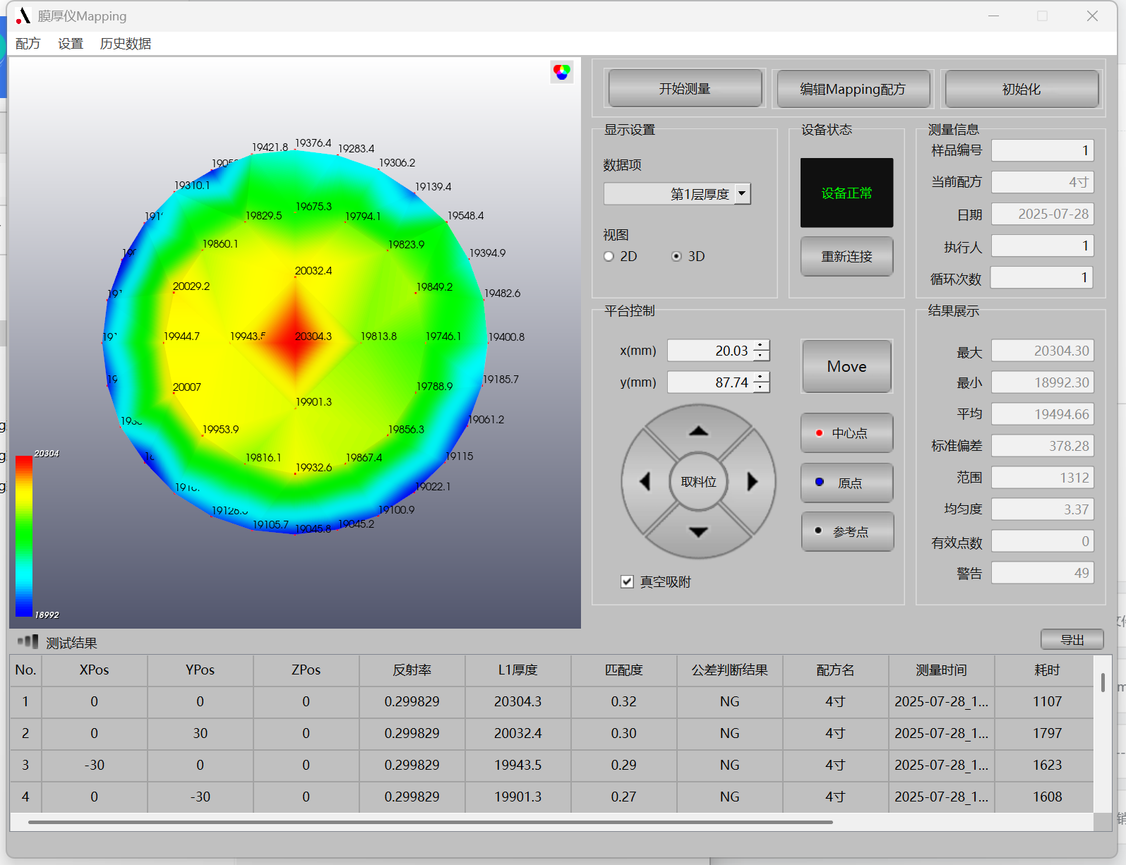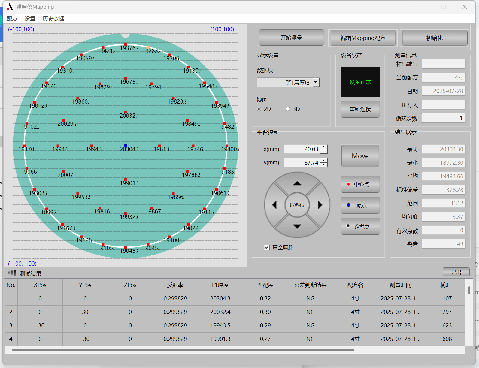 - 薄膜厚度测量仪AF系列:Mapping测量晶圆表面光刻胶涂层厚度,确保曝光、显影环节的工艺一致性,为精细电路成型提供保障。