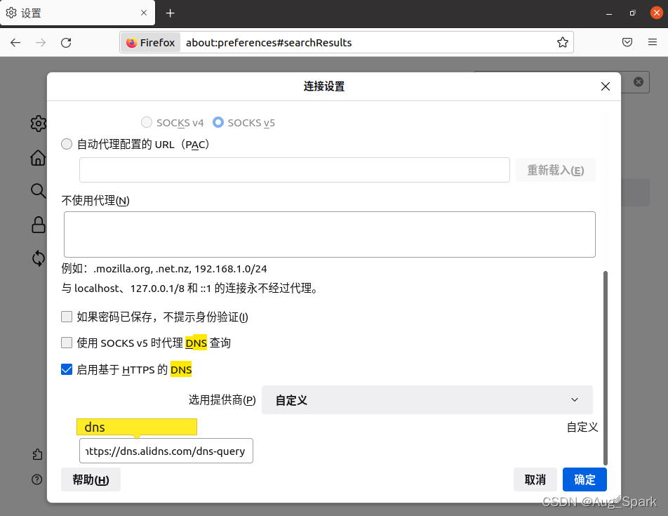 3.在设置页面的底部,找到并勾选“启用基于HTTPS的DNS”,选择“自定义”的提供商,并输入接口地址: https://dns.alidns.com/dns-query ,点击【确定】。