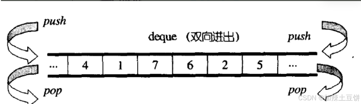 deque(双端队列):是一种双开口的"连续"空间的数据结构,双开口的含义是:可以在头尾两端进行插入和删除操作,且时间复杂度为O(1),与vector比较,头插效率高,不需要搬移元素;与list比较,空间利用率比较高。