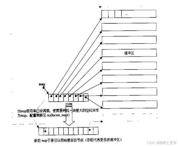 deque的内存管理是其与vector的主要区别之一。deque由多个连续的内存块组成,这些内存块之间通过指针或引用相互连接。当在deque的两端插入或删除元素时,只需要调整相应内存块的指针或引用,而不需要像vector那样重新分配整个内存块并复制元素。这使得deque在两端进行插入和删除操作时效率更高。